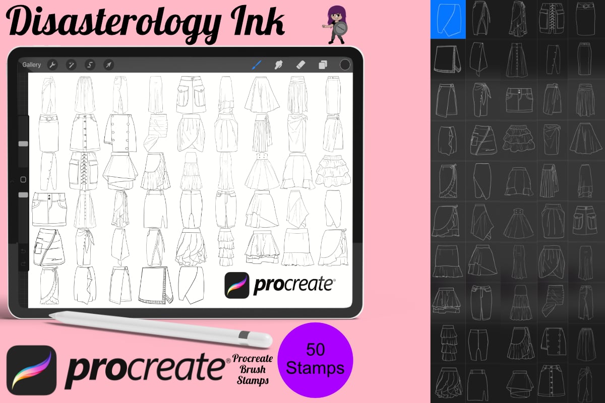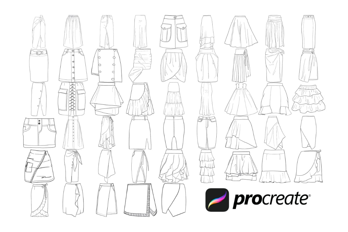 Skirts Clothing Procreate Brush Stamps, 50 Skirt Stamps
