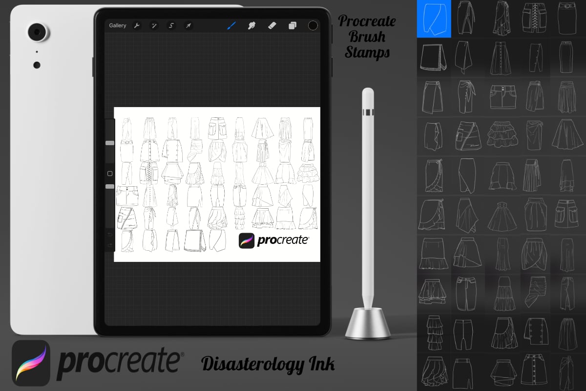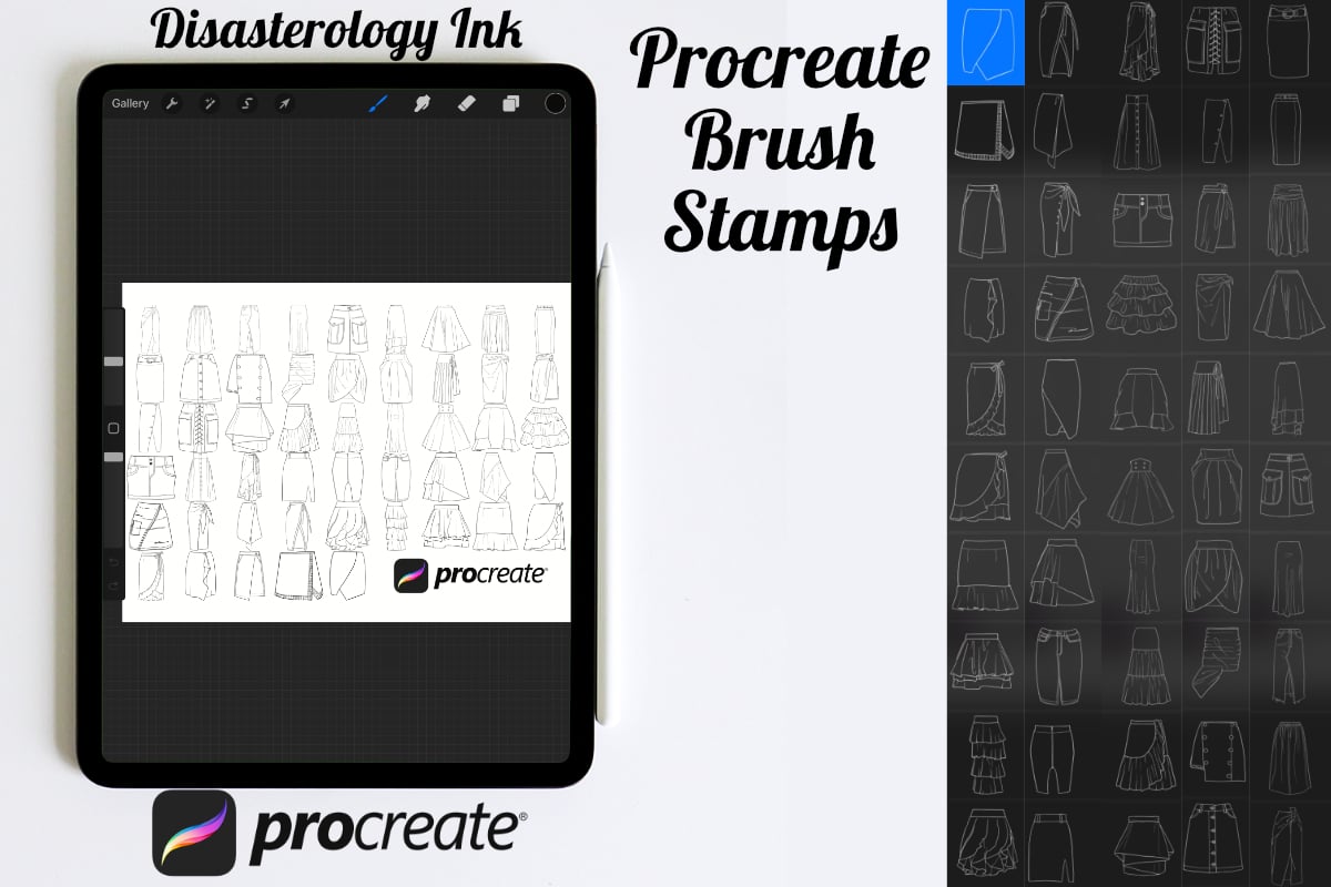Procreate stamps save time when drawing, saving the effort of having to recreate the same thing for multiple designs and projects, save time on your design by purchasing these skirt clothing brush stamps so you can utilise that time on creating more beautiful art.
