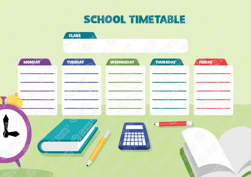 DIY print template school timetable. Print a template of school timetable at home, impress your children and make their day cheerful. Back to school no more bored. A4 paper size.