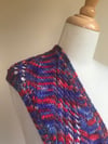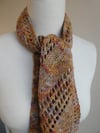 Fanshawe uses one skein of DK or worsted weight yarn. It is particularly designed to show hand painted and variegated yarns to best advantage. The scarf can be made longer as desired, to use up as much of a special skein as possible.