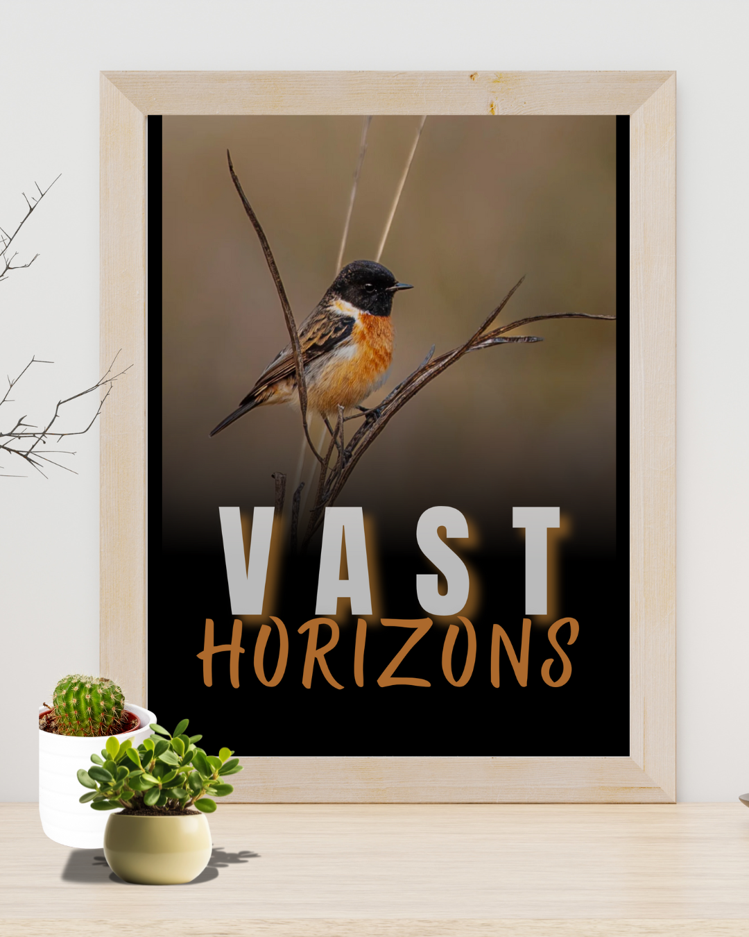 This stunning A2 poster features the resilient Siberian Stonechat against an endless expanse of rugged terrain. This remarkable bird, with its distinctive russet breast and bold markings, embodies the spirit of vast, open landscapes where the sky meets earth in breathtaking harmony.
