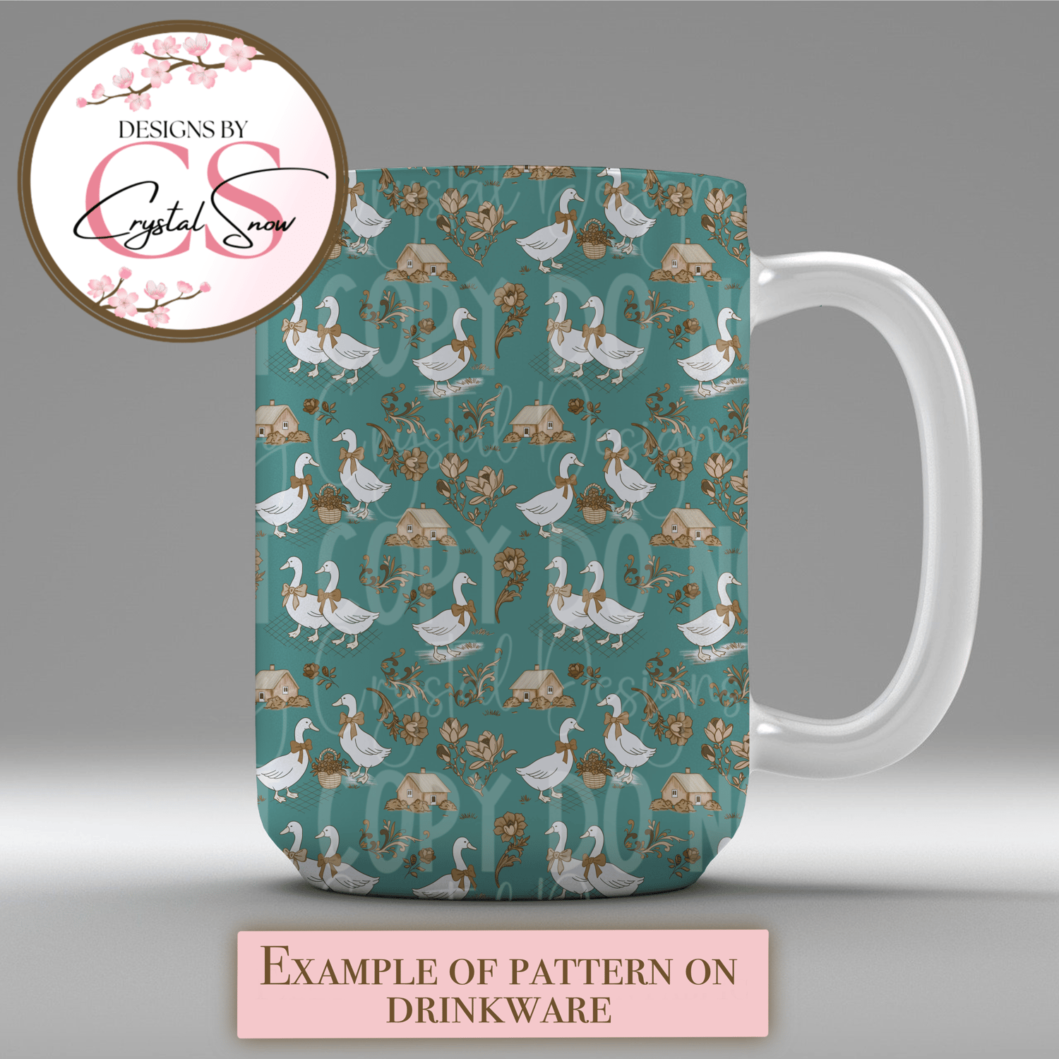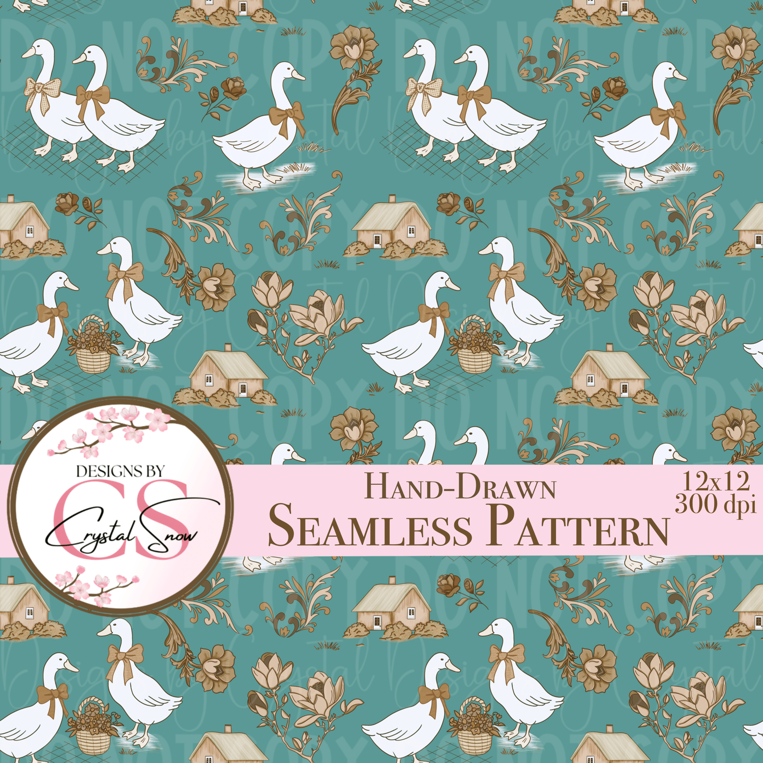 90s Cement Goose Seamless Pattern | Hand-Drawn Gold Toile Style Digital Download | Cottagecore Nostalgia Pattern Scrapbooking paper