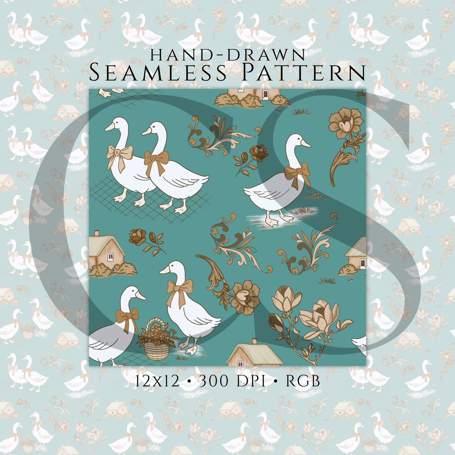 Warm, rustic, and timeless 🤎 This vintage goose seamless pattern brings cozy farmhouse charm to your designs.