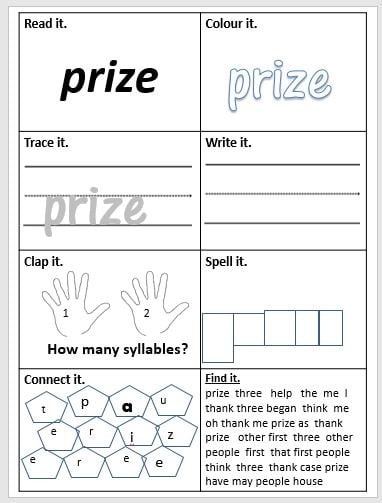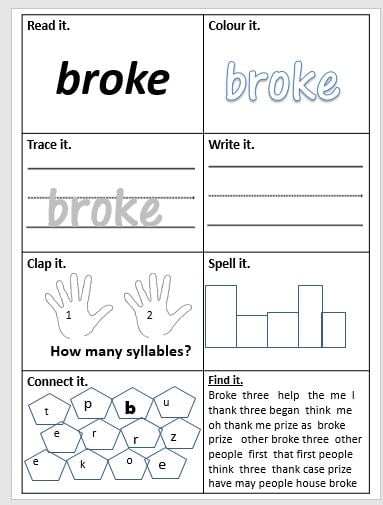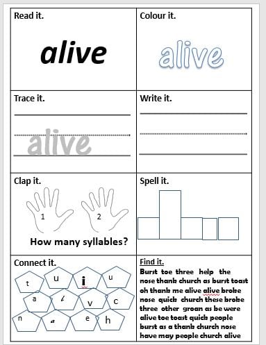 READ it, COLOUR it, TRACE it, WRITE it, CLAP it, SPELL it, CONNECT it, FIND it