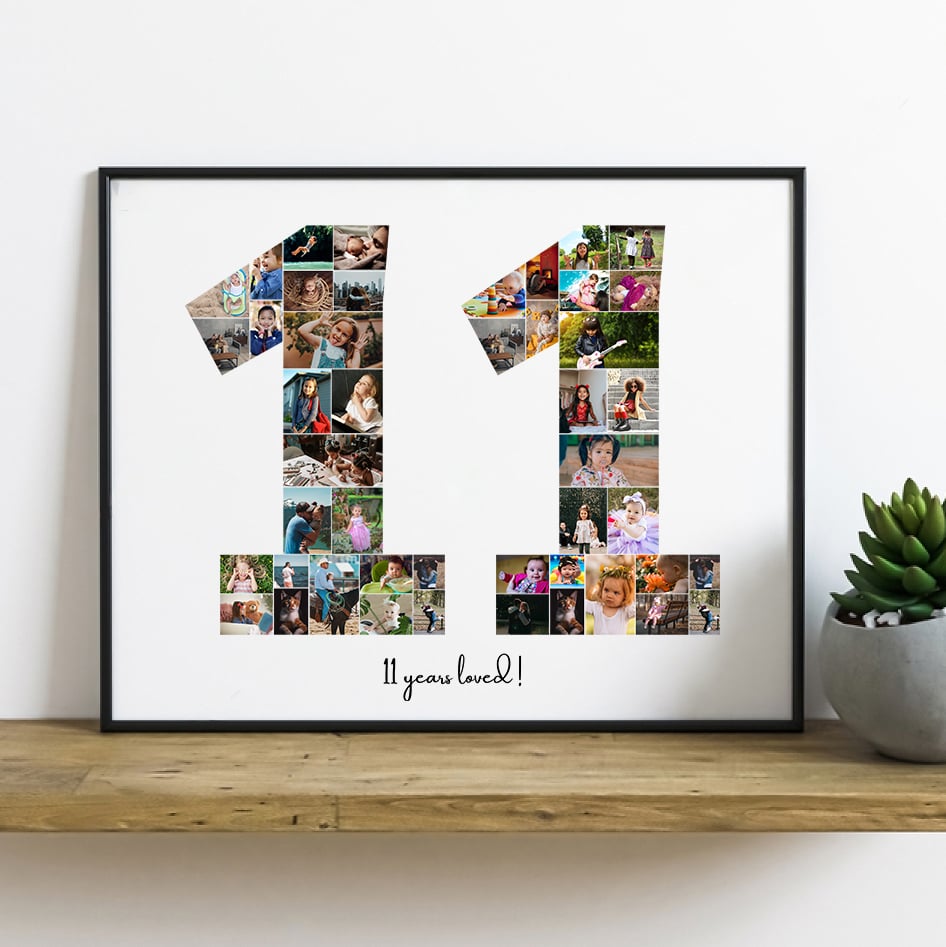 EDITABLE Custom 11 years anniversary photo collage | Gift for husband, boyfriend | 11th Birthday poster