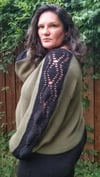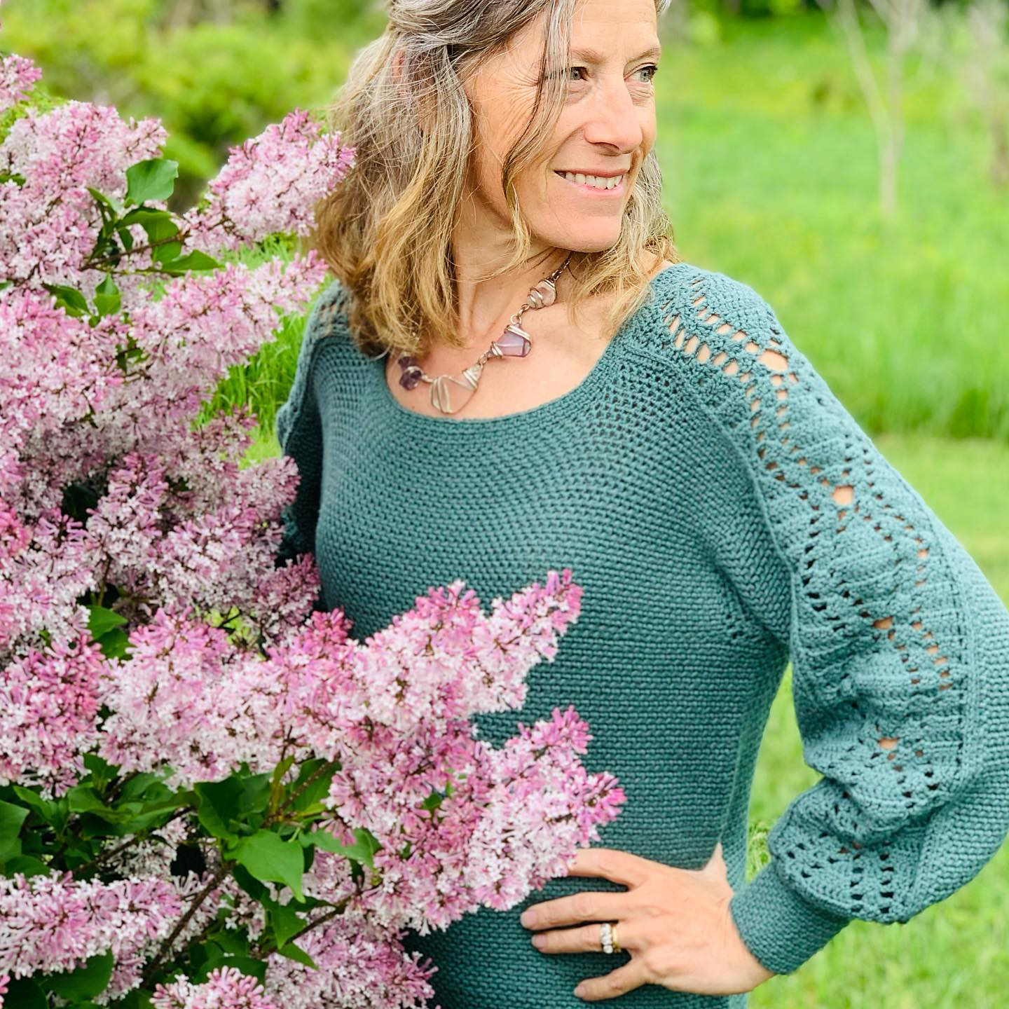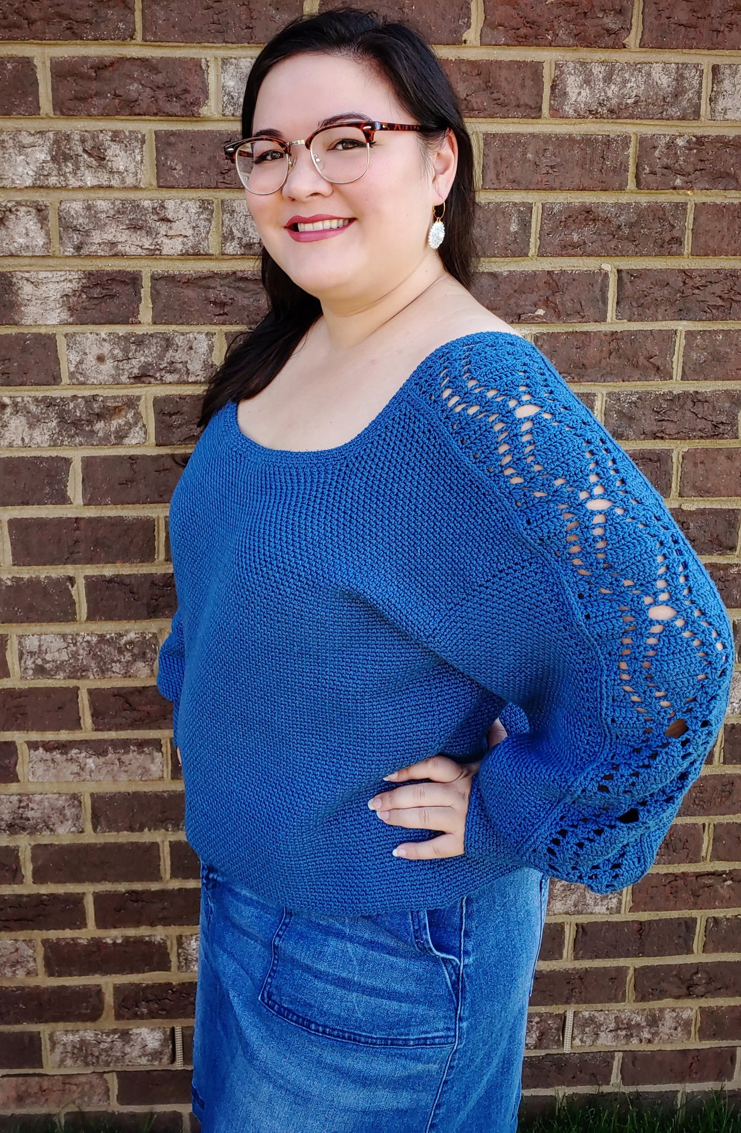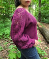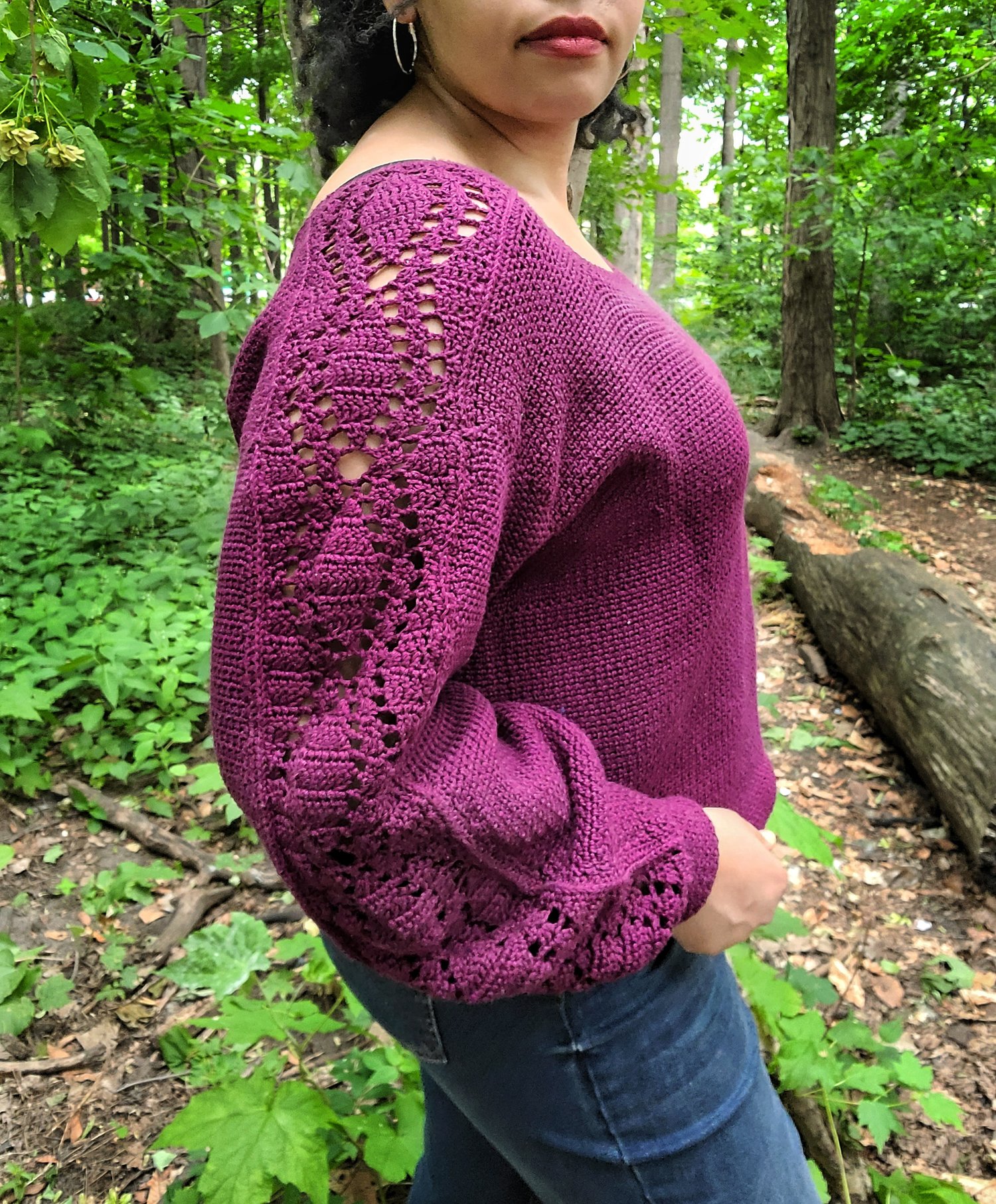 The Laurentian Sweater uses a modified version of the flowy leaf motif from the Laurentian Shawl and incorporates it into a puffy, dramatic sleeve. This is an extra roomy sweater that is perfect for the cool fall, winter, and spring temperatures. It can totally be dressed up or down to suit the occasion.