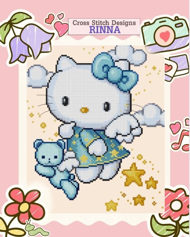 Cute ANGEL KITTY of the STARS (Pink and Blue) 2 Cross Stitch PDF Downloadable Patterns
