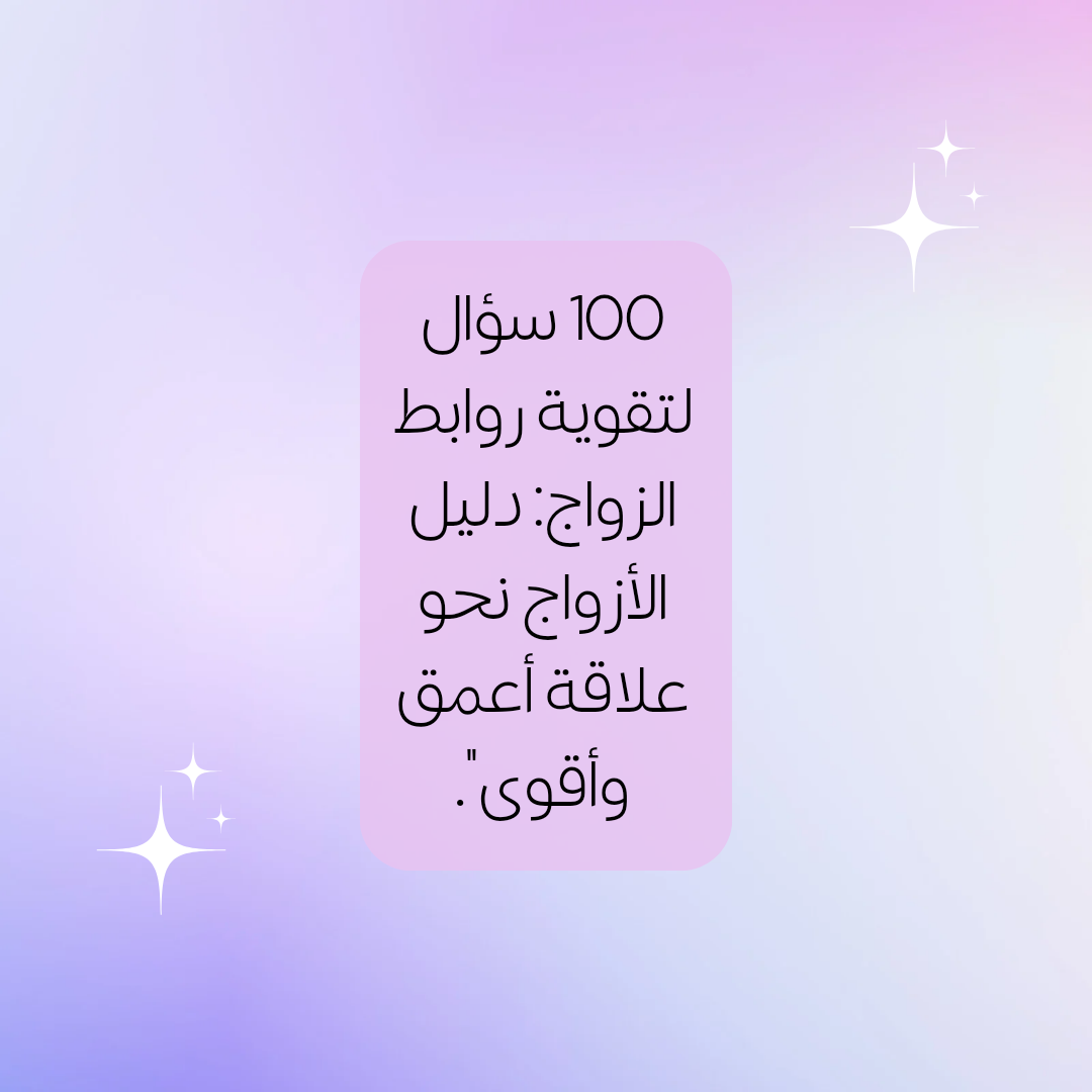 📖 كتاب يحتوي على 100 سؤال للزواج هو دليلك الأمثل لتقوية الروابط وفهم أعمق بينكما. استعد لاكتشاف أسئلة تلهم الحوار، تزيد من الحب، وتقرب بين القلوب. ❤️ 👩❤️👨