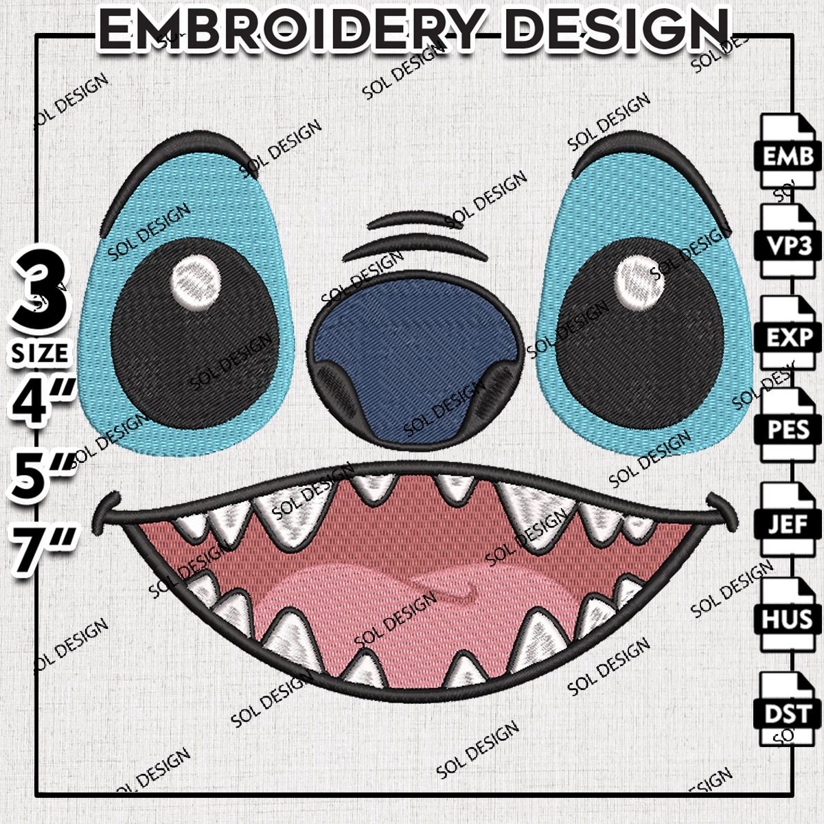 Stitch Face Disney Cartoon Embroidery Designs, Lilo and Stitch Machine Embroidery Files, Cartoon Character Machine embroidery designs, Disney, 3 sizes, Digital Download