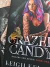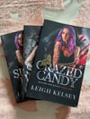 Paperback copies of Crazed Candy, Sweet Violence, and Sugar Rush by Leigh Kelsey signed by the author, with a bonus 'Life is Golden' golden retriever pin for everyone who purchases a bundle. (It'll make sense when you read the books, promise!)