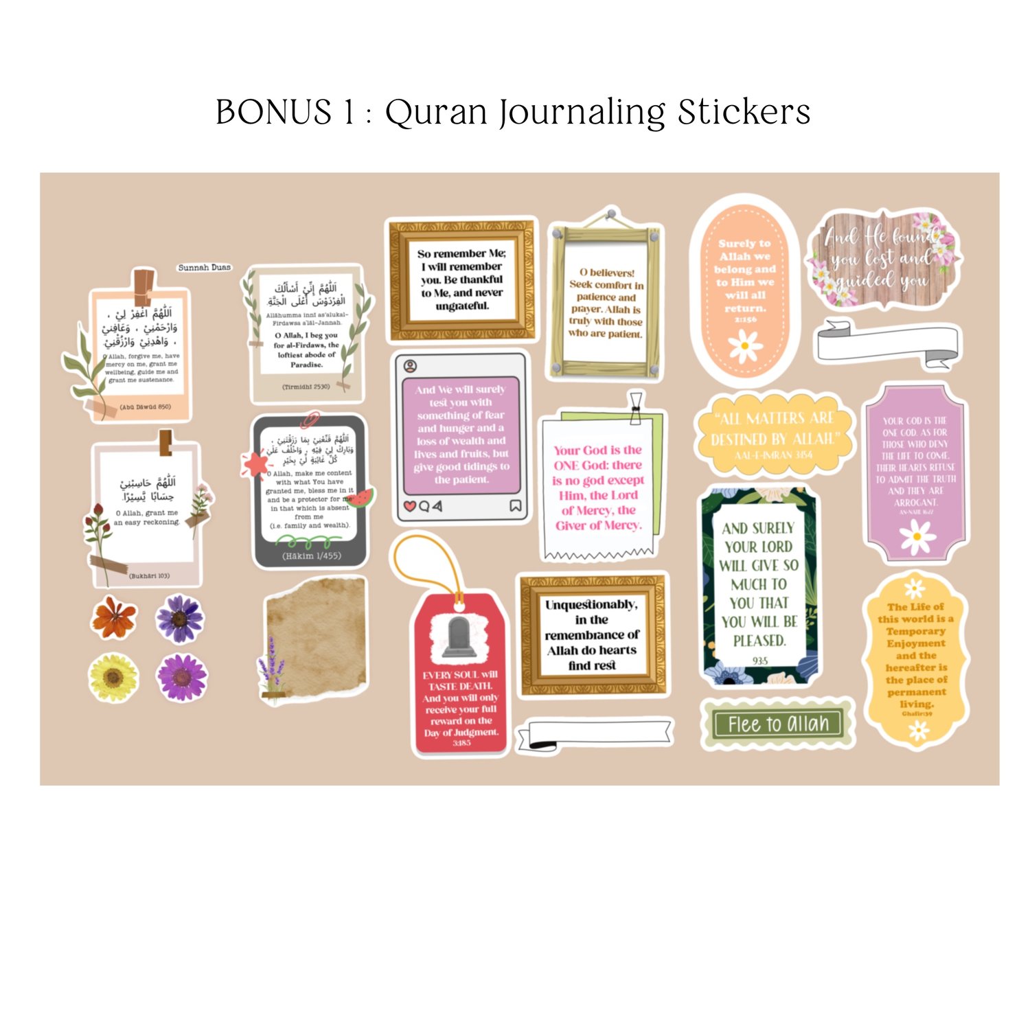 - Colorful Quran journaling stickers to make your journaling experience even more fun and engaging.