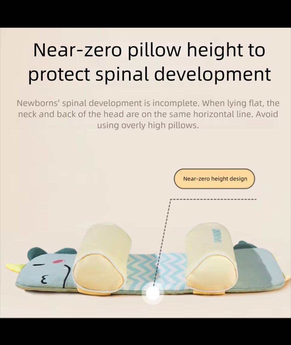 The pillow features a concave center that helps distribute pressure evenly across the baby’s skull, reducing the risk of head deviation and flattening.