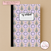 This printable notebook cover design features hand-drawn evergreen trees and holiday wreaths tied with lilac bows β perfect for adding a pastel Christmas touch to your journals, planners, or school supplies.