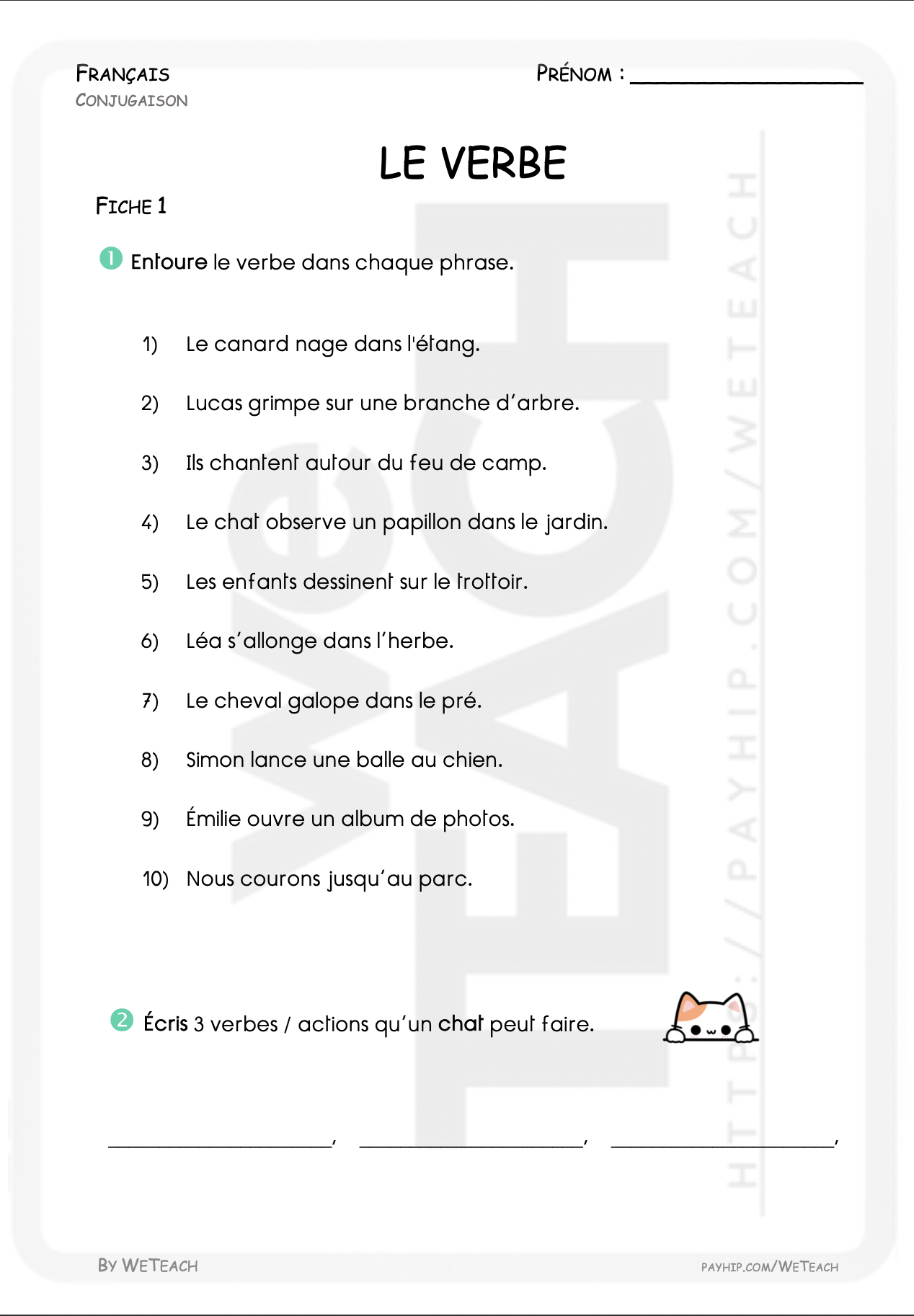 Ce dossier de 6 pages est conçu pour aider les enfants à découvrir ce qu’est un verbe, à identifier l’infinitif, et à s’entraîner avec des exercices adaptés. Idéal pour les enseignants et parents souhaitant accompagner les élèves de manière progressive.