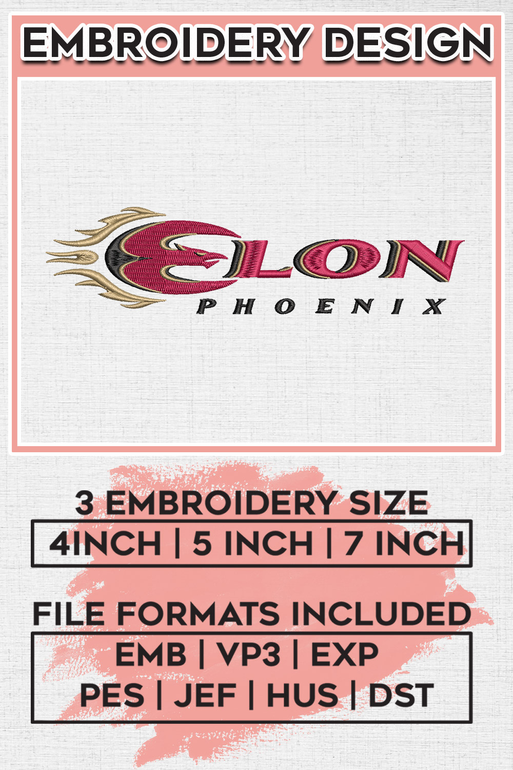 NCAA Elon Football Team Writing Logo Embroidery Designs, NCAA Elon Phoenix Team Embroidery Designs, NCAA Logo embroidery designs, Digital Download