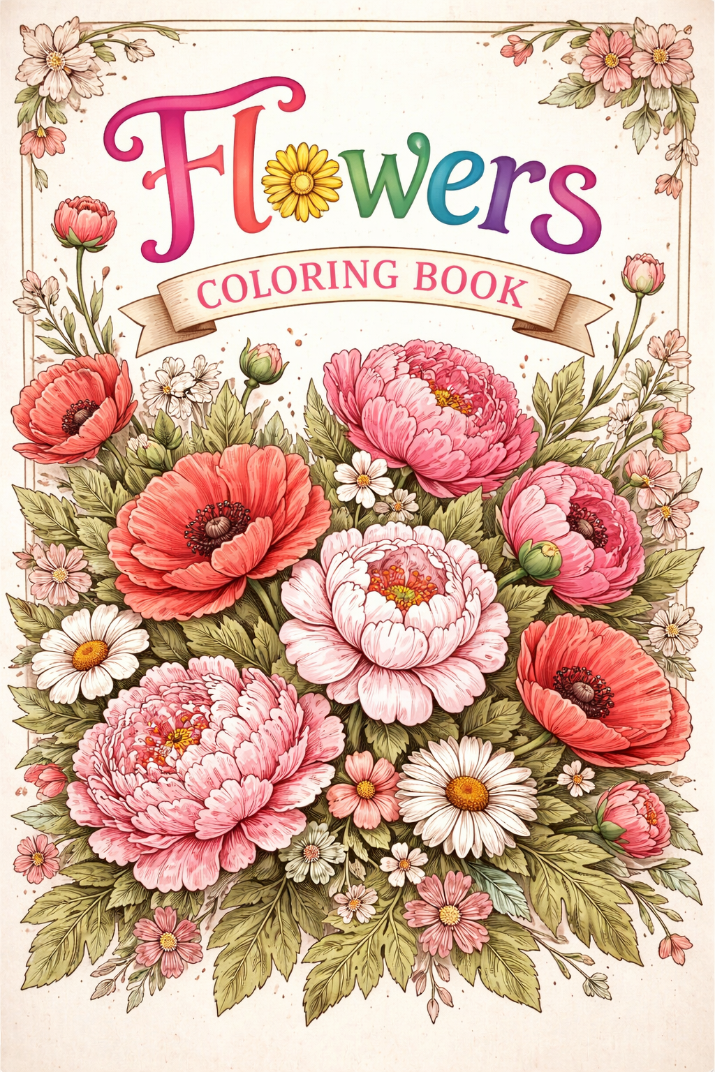 Flowers, e-colouring book, 62 pages, digital printable product, instantly download, and 12 flower-digital posters