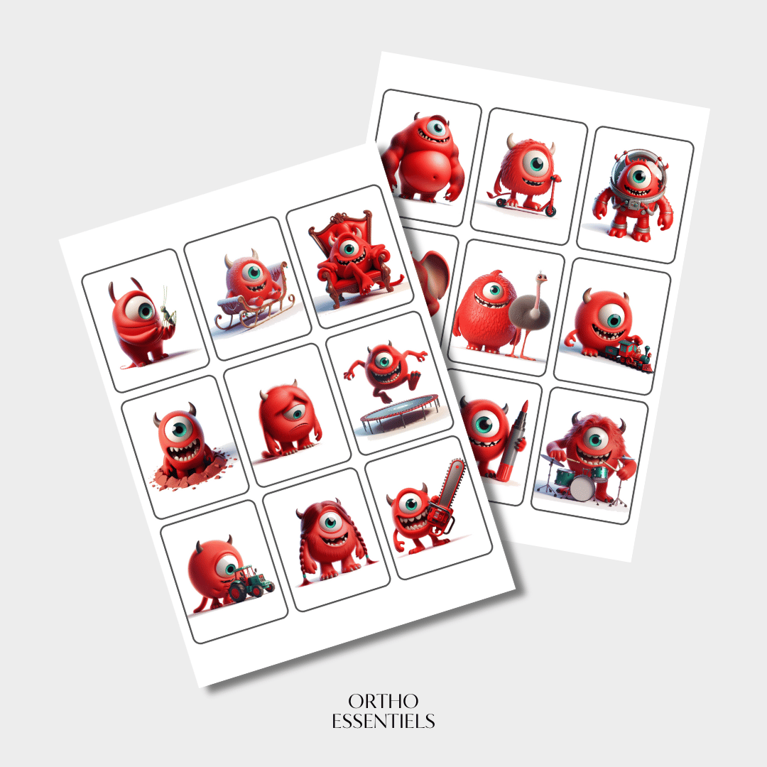 Chaque carte présente Tristan dans différentes situations, chacune impliquant un mot contenant le son [TR].