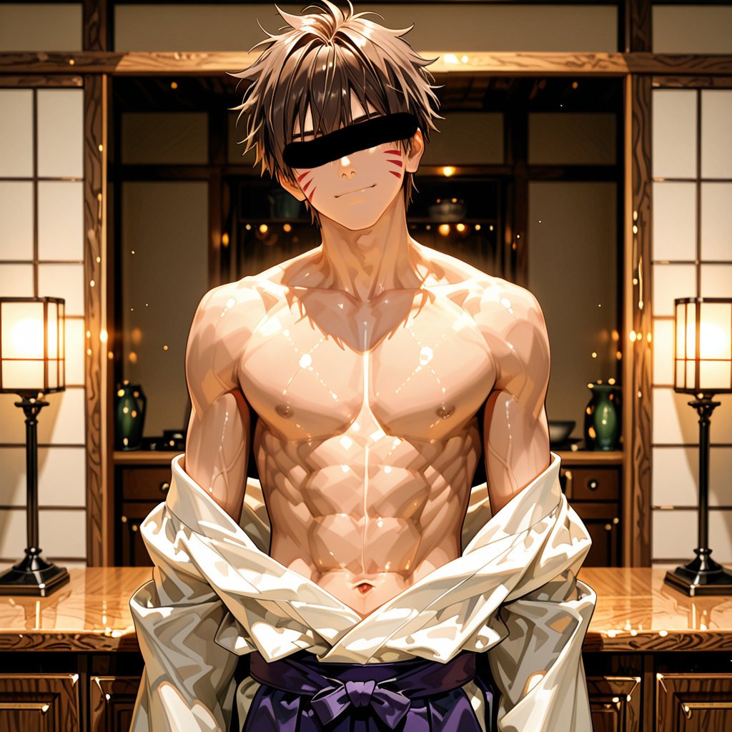 日本の正月をテーマに、着物を着用している男性を、キャラクターごとにお任せ作成しました。男らしいキャラクターの魅力を思い切って表現しました。