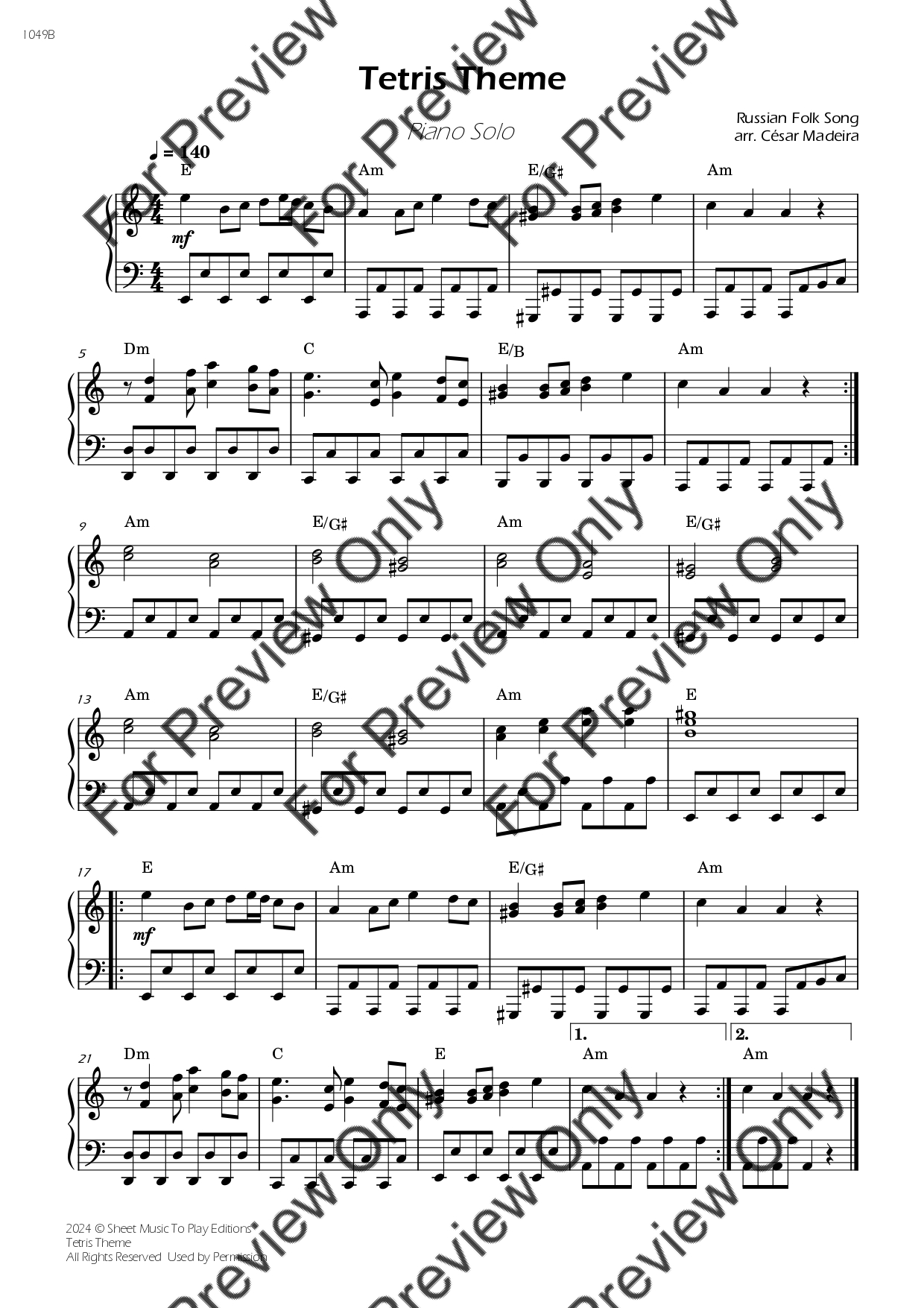 Tetris Theme. Arrangement for Piano Solo. With Full Score. Have fun!