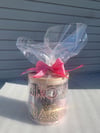Each jar is carefully filled with a curated selection of premium items like self-care essentials and/or stationary items. This jar may include luxurious lip balm, Bath and Body Works moisturizing hand sanitizer with stylish holders, indulgent lip butter, decadent Ghirardelli chocolates, refreshing mints, and optional alcohol selections.