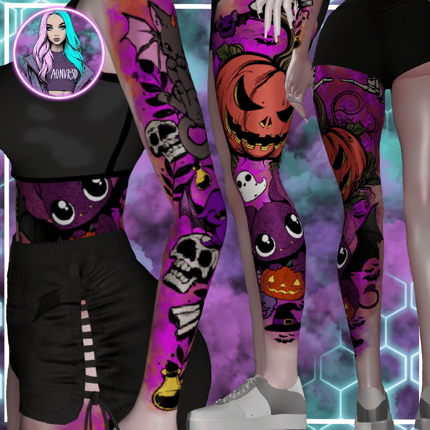 I created this cute 2K spooky tattoo texture. It's got bats, pumpkins, skulls, witches' hats, and other cute
