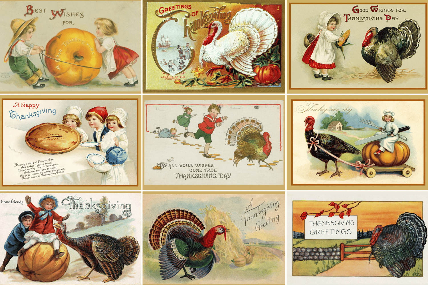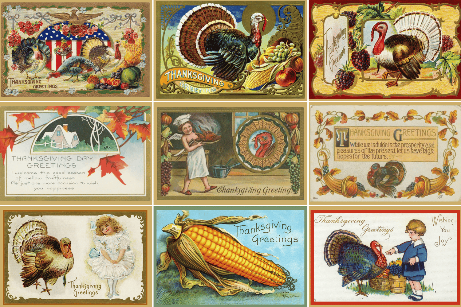 - 25 high-quality vintage Thanksgiving postcard prints.