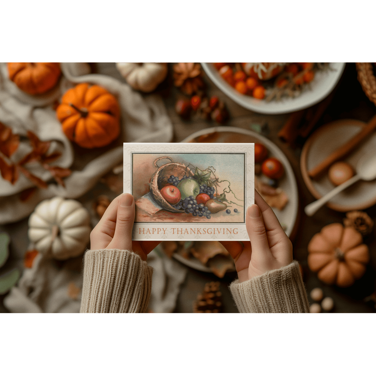 - Use the postcards to create a nostalgic Thanksgiving gallery wall or design custom holiday greeting cards.