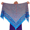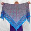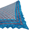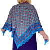The shawl is worked with just one colour per row. Intricate 3/2/3 slip-stitch cables (described in the pattern) are the main feature on the body of the shawl. The lace border is a unique variation of the Feather and Fan pattern.