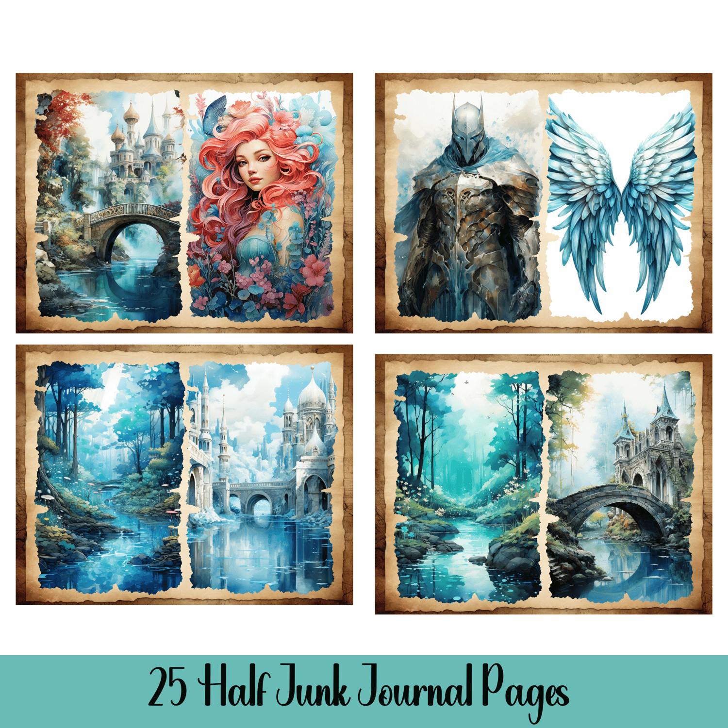 Blue Fantasy Junk Journal Pages - 20 Mystical Printable Ephemera Designs for Journaling and Crafting