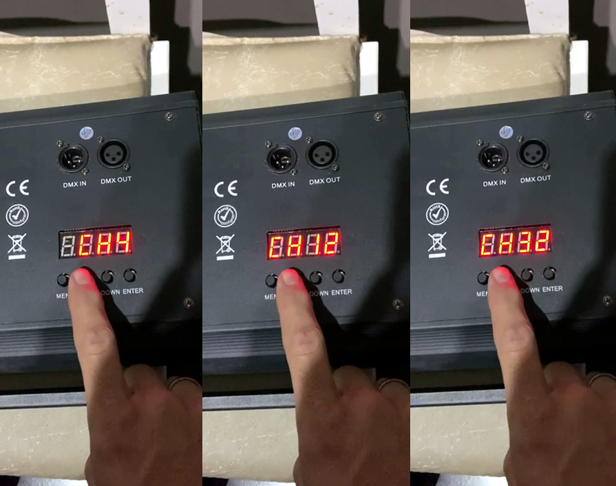 * Verifique en el display del equipo, que muestre los modos dmx: 4CH, 12CH y 32CH (ver cuarta foto).
