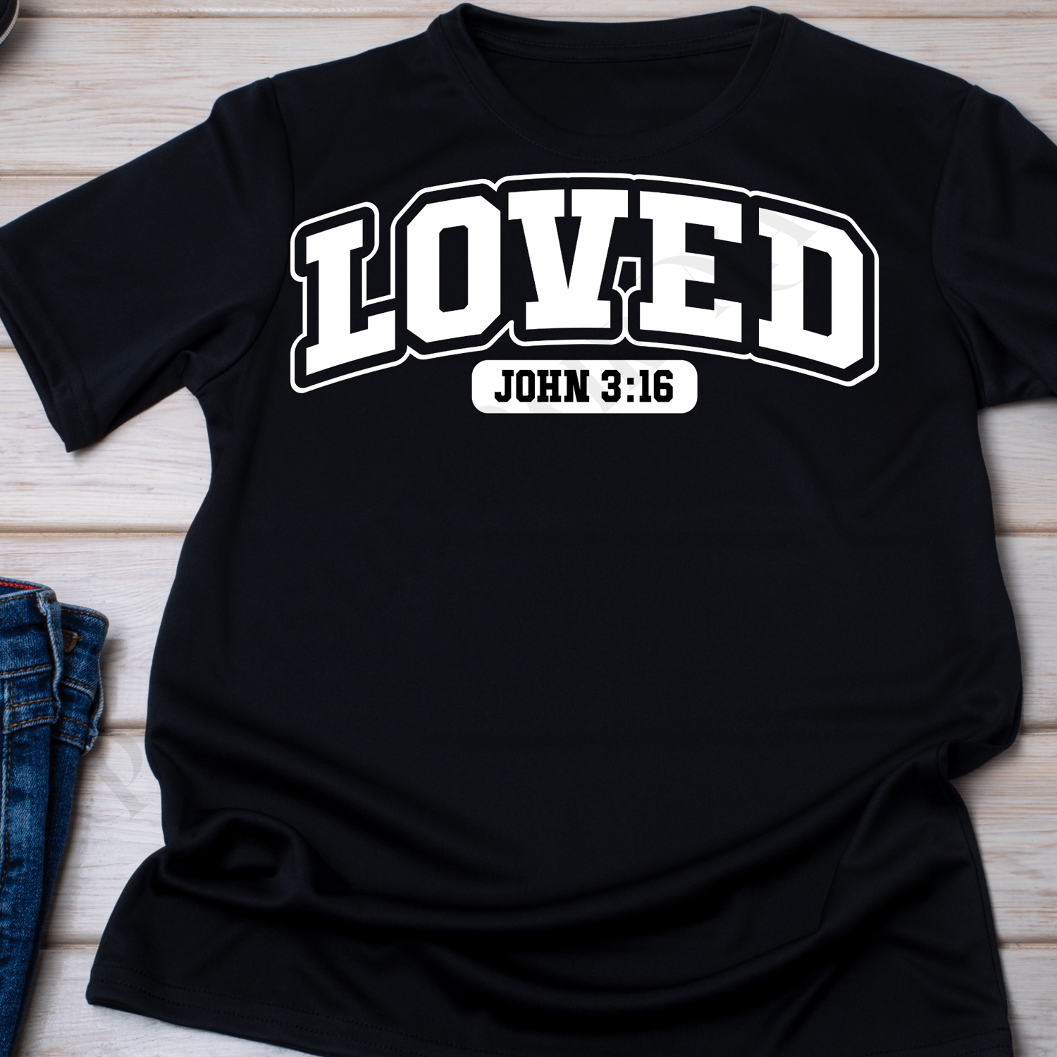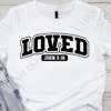 Carry a powerful message of divine affection with this 'LOVED John 3:16' t-shirt. This impactful design features the word 'LOVED' in prominent, bold lettering, serving as a reminder of God's profound love. Below it, the scripture reference 'JOHN 3:16' is clearly displayed, pointing to one of the most well-known verses in the Bible: 'For God so loved the world, that he gave his only Son, that whoever believes in him should not perish but have eternal life.'