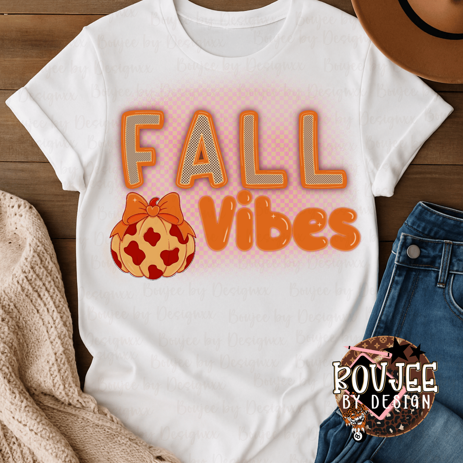Fall Vibes PNG | Retro Fall Sublimation Design | Pumpkin with Bow Autumn PNG for DTF & Sublimation Printing