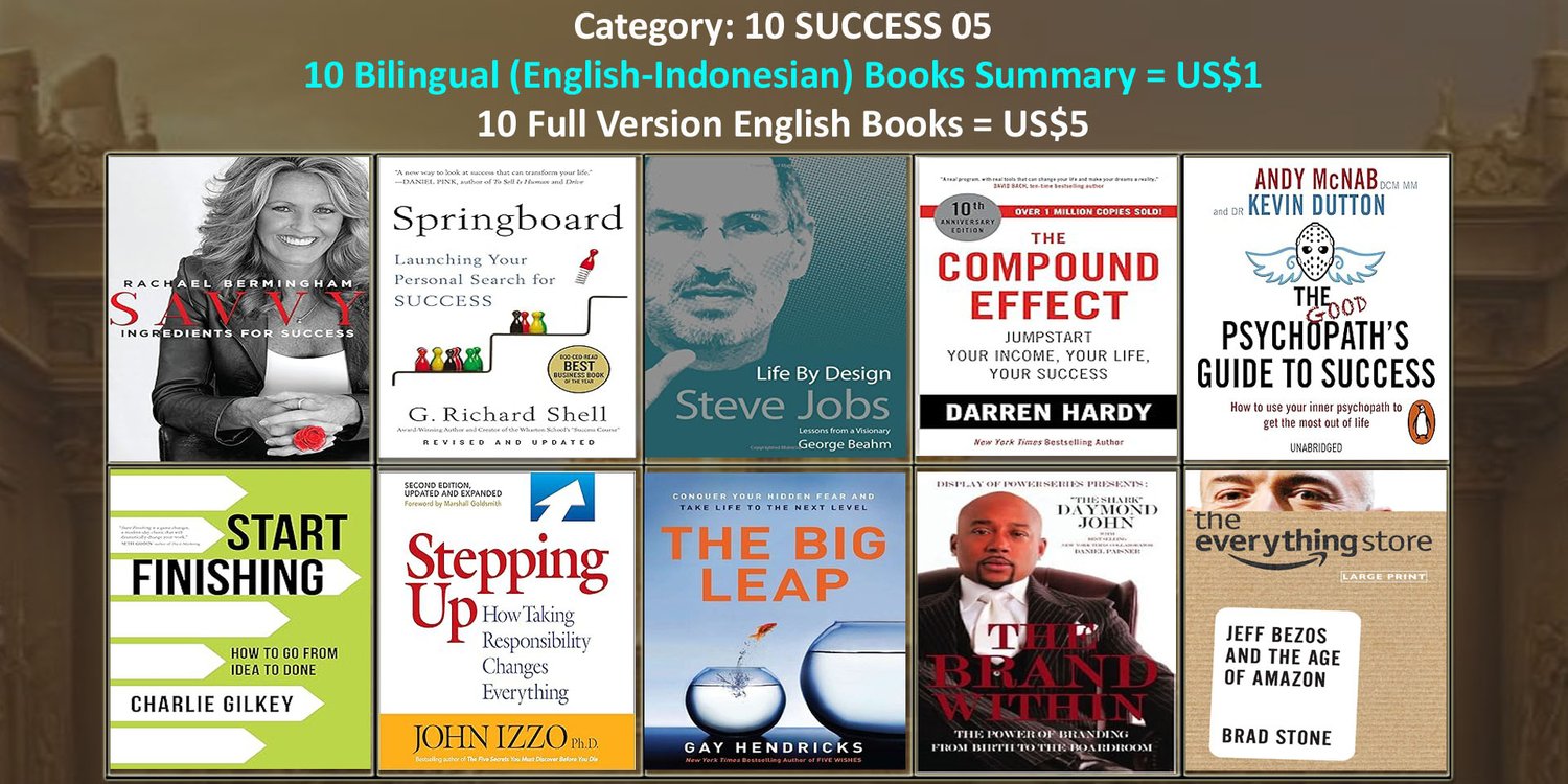 · Untuk 10 buku summary dalam 2 bahasa (English-Indonesian), hanya perlu 1 dollar saja, atau Rp.16.000,-