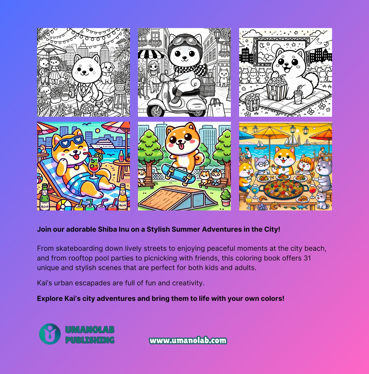 Join Kai, the adorable Shiba Inu, on an exciting summer adventure in the city! From skateboarding through lively streets to enjoying a cozy café break, this bold & easy kawaii coloring book captures the fun, charm, and energy of urban life.