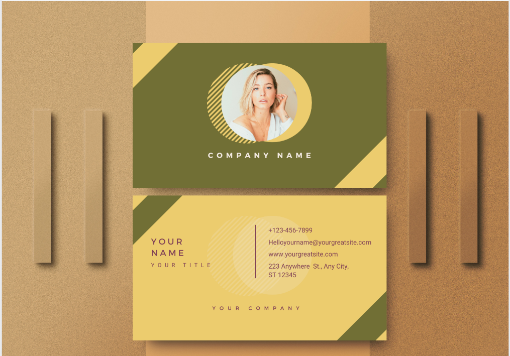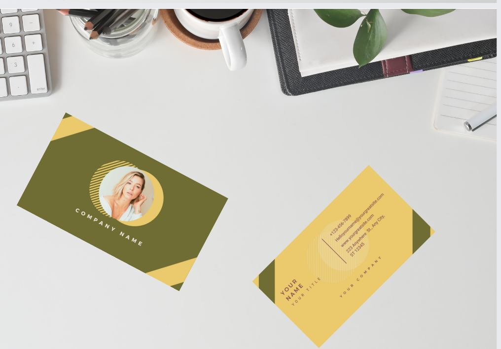 Simple, modern, elegant, stylish green horizontal photo business card: This is a very minimalist yet professional, and elegant business card. The design gives off a clean and crisp vibe and is perfect for a consultant, realtor, or other self-employed individual. Add your square photo, which will snap into place, and your name, title, and contact details, and be ready to go with this professional horizontal business card. The template displays 4 lines of contact details on the back. However, you may use up to 5 lines without raising the name on the back.