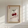 This bold yet minimal printable wall art features hand-painted cherries styled as an Ace of Hearts playing card, paired with handwritten-style typography for a playful, confident statement. It’s flirty, modern, and effortlessly cool — perfect for anyone who loves cheeky quotes with a graphic twist.