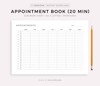 Appointment Book 20 Minute Intervals, Landscape, Printable Template, A4/Letter Size
