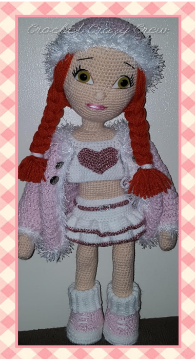 This is our latest creation she is called 'Dennie The Doll' she is made up of basic stitches and rounds and stands at approximately 21" tall, the pattern includes the following:-