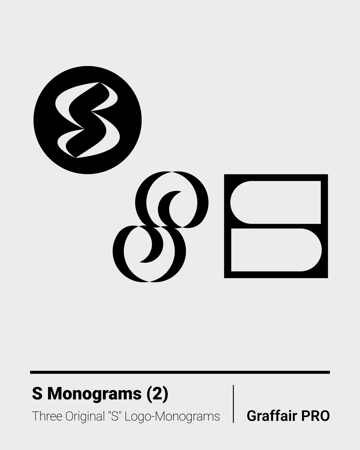 S Monograms (2): The 2nd set of three original "S" logo monograms, included in the "1050 SVG Monograms" super bundle, which also features an Index catalog.