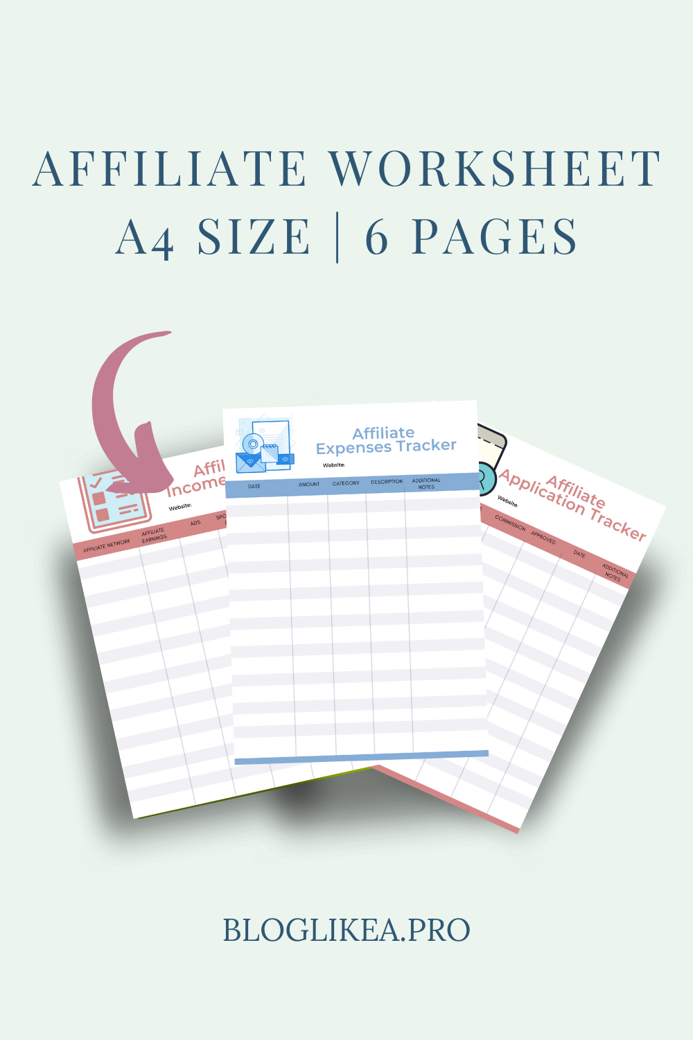 Printable Affiliate Worksheet | A4 Size | 6 pages