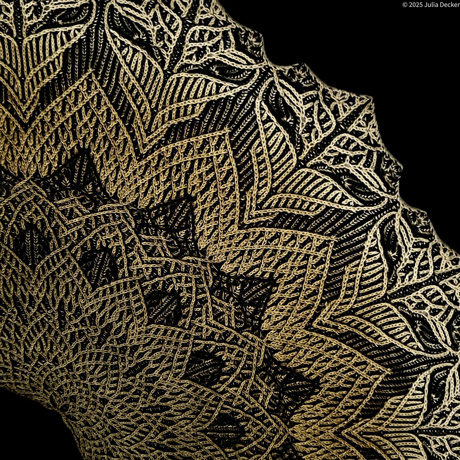 - stitch markers may be useful but the interconnected nature of the design requires occasional movement of the stitch markers.