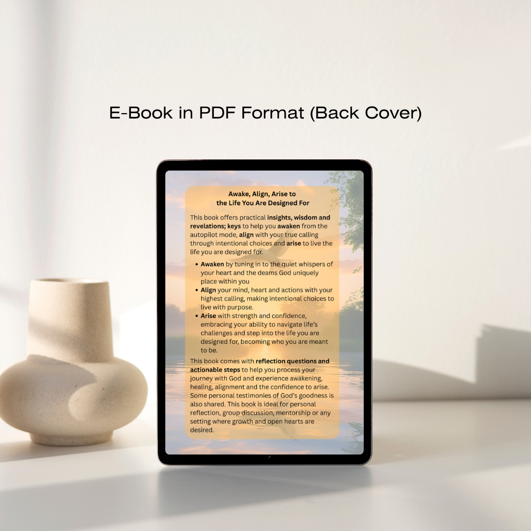 It comes with reflection questions and actionable steps to help you to process your journey with God and experience awakening, healing, alignment and confidence to arise. Some personal testimonies of God's goodness is also shared in this book.