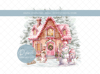 C233 Pink gingerbread Christmas house theme - Digital download 300dpi perfect for sublimation or print.