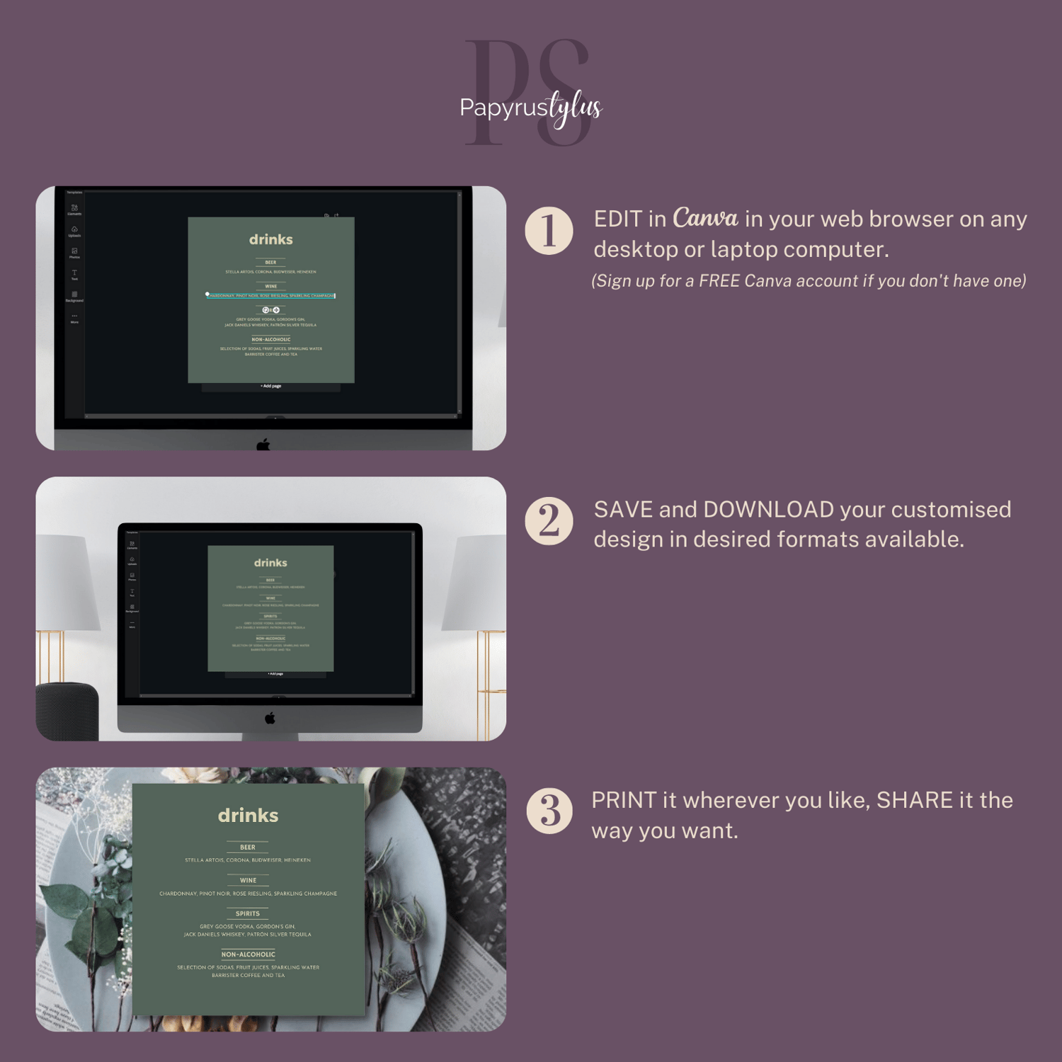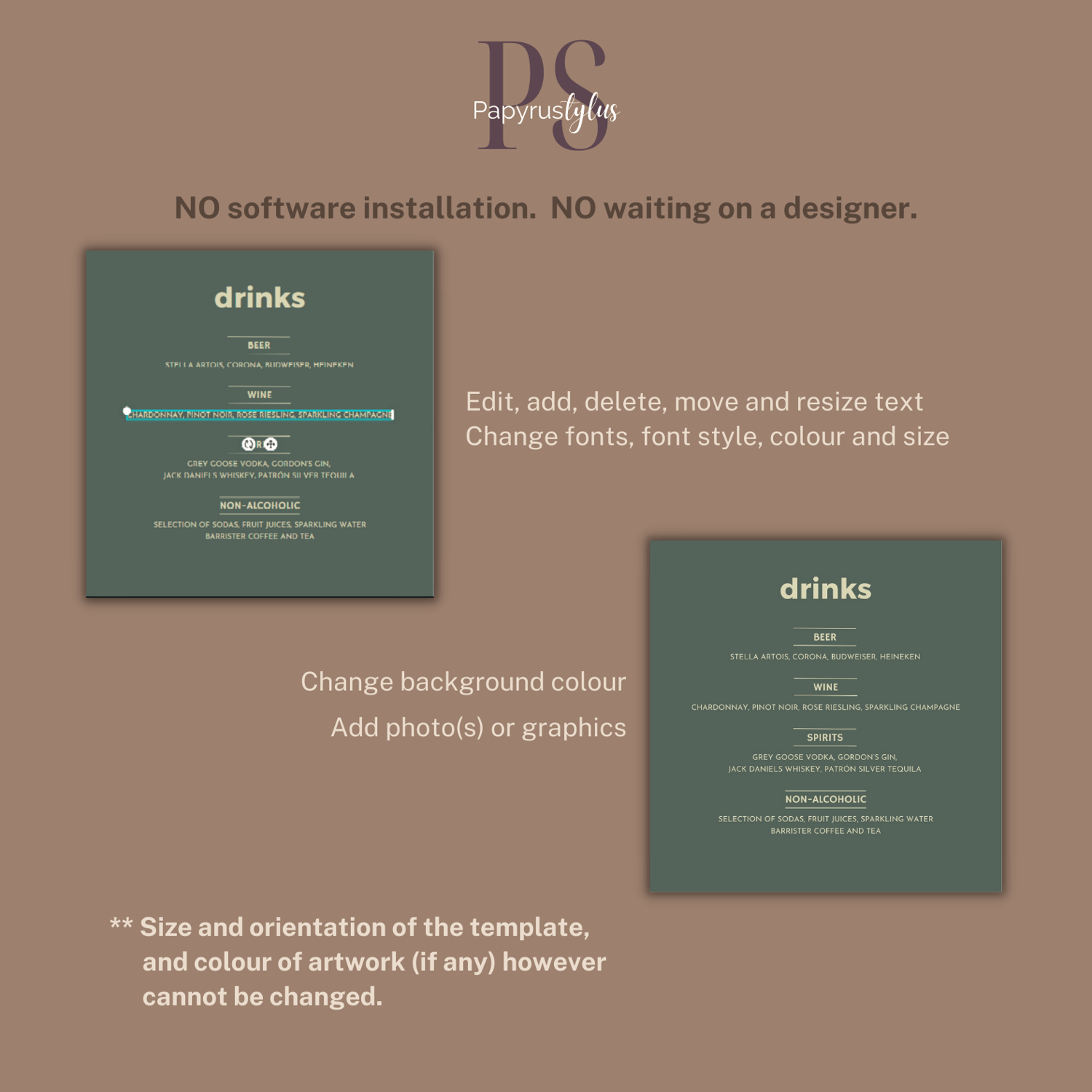 DAPHNE Minimalist Wedding Drinks List Template | SAGE