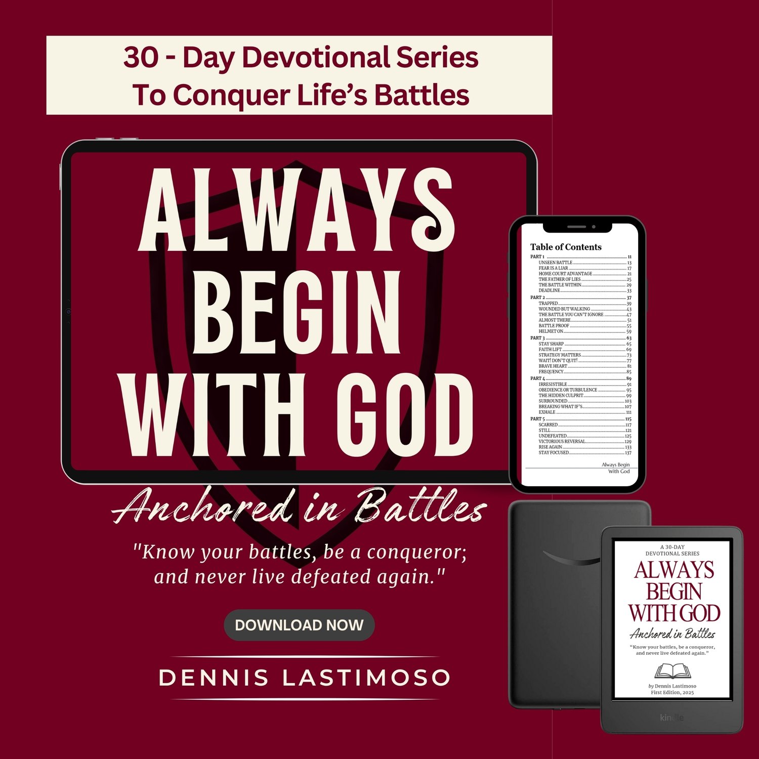 Whether you feel like giving up or you're silently fighting battles no one sees, this devotional will help you stand firm in Godβs promises. Conquer lifeβs battlesβand discover that you were never meant to fight alone.