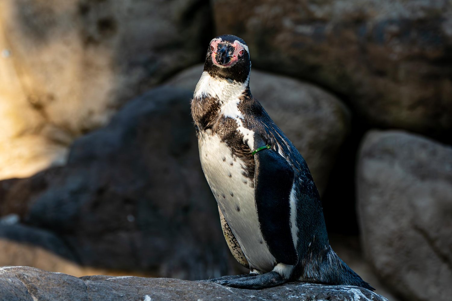 Penguins are birds adapted to marine life that have lost the ability to fly, but have become formidable swimmers that feed on fish, crustaceans and squid. All species live in the southern hemisphere and are characteristic animals of the cold Antarctic regions, although the Humboldt penguin lives further north, on the coasts of Chile and Peru, in the region bathed by the Humboldt Current. Humboldt penguins, like all penguin species, are birds adapted to marine life that have lost the ability to fly and are, on the other hand, excellent swimmers. They have adapted almost entirely to aquatic life, since they practically only come ashore during the breeding season. Accordingly, the wings have become flippers and the body shape is hydrodynamic. The plumage is very dense and waterproof, with three layers of feathers distributed evenly throughout the body, so as not to offer resistance to water and to protect the body from cold and humidity. The legs are set far back and have the three front toes joined by an interdigital membrane. The beak is strong and with sharp edges, as is the tongue, which has a spiky appearance, adaptations that allow them to better capture the crustaceans, cephalopods and fish on which they feed.