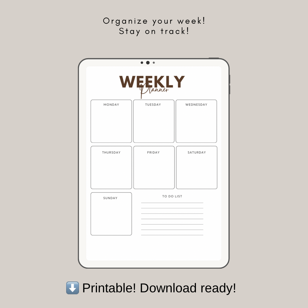 Stay on track with our printable minimal weekly planner. Designed to keep your week organized and stress-free, our planner features a clean and simple layout to help you focus on your priorities. Download and print it out today to start planning your most productive week yet!