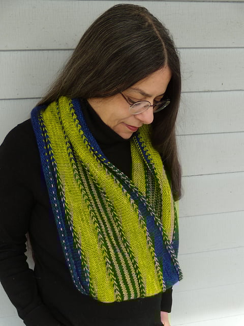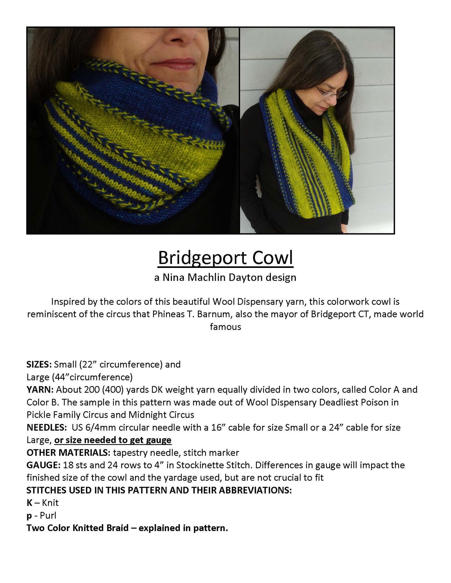 Inspired by Wool Dispensary Yarns’ circus colorways palette, this cowl’s bold blocks of color, and two-tone knitted braids (completely explained in the pattern) make this cowl a fun and quick colorwork project. Bright and bold, it’s reminiscent of showman extraordinaire (and mayor of Bridgeport, Connecticut) Phineas T. Barnum, but it looks fabulous in cool neutrals as well!