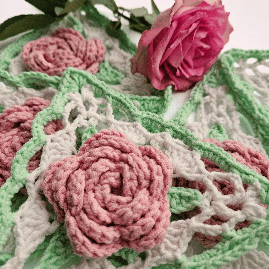 This vintage inspired rose crochet bunting pattern is perfect for adding a romantic floral touch to your home decor. A great addition to cottagecore or farmhouse style decor, the Romantic Rose crochet bunting is really versatile. It could even be used as crochet wedding decor! This crochet rose garland can be made as long or short as you like.
