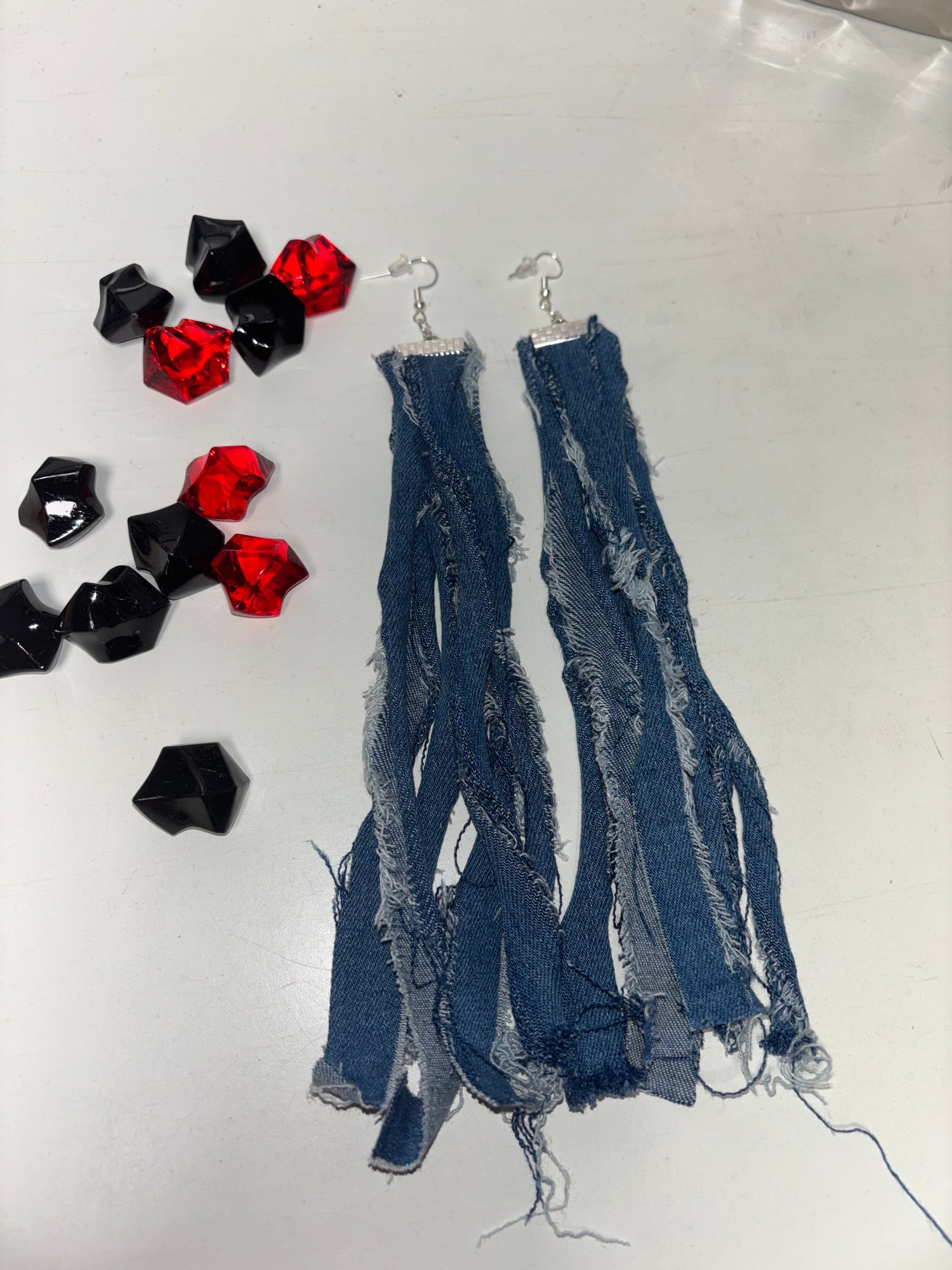 The I Am Fully Known tassels are handcrafted from strips of upcycled denim, layered to create length, movement, and texture. Each strip is carefully frayed for a distressed yet graceful finish. Despite their statement-making length, they remain lightweight and comfortable, perfect for all-day wear.